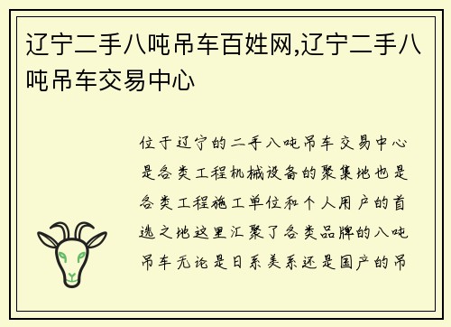 邯郸卡车吊具厂和邯郸吊车配件市场是邯郸地区最大的卡车吊具和吊车配件市场,提供一站式采购解决方案。这个市场拥有广泛的客户群体,从个人车主到大型物流公司都在这里寻找他们所需的卡车吊具和吊车配件。 1. 市...